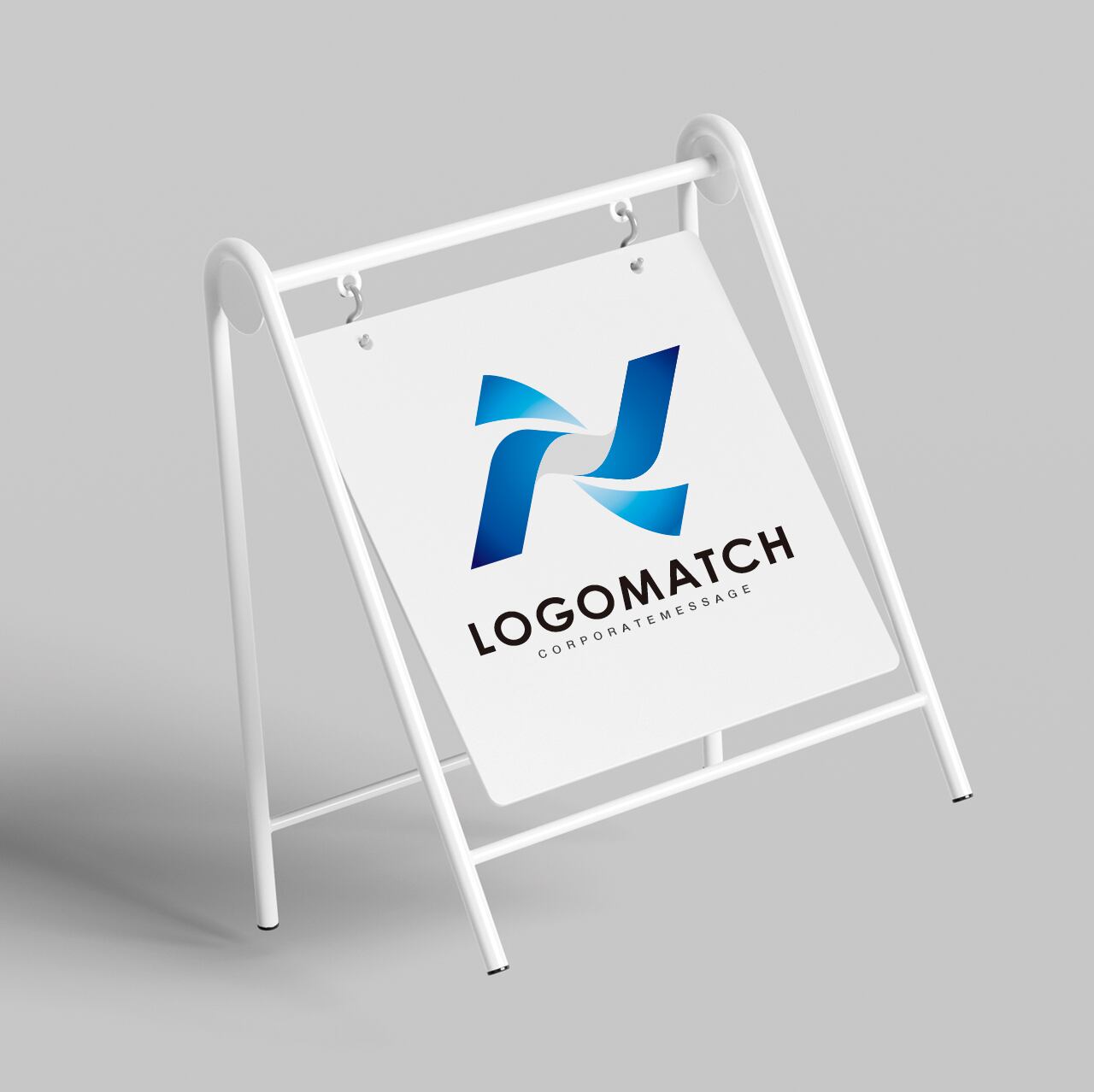 流れるような二つの波(ウェーブ)が中央で交差する、動きと勢いを感じさせる抽象的なデザイン。アルファベットの「N」または「X」を思わせる形状と、青のグラデーションが、スピード感、先進性、信頼感を表現しています。情報技術、金融、運輸など、ダイナミックな成長や連携を重視する企業に最適なシンボルです。