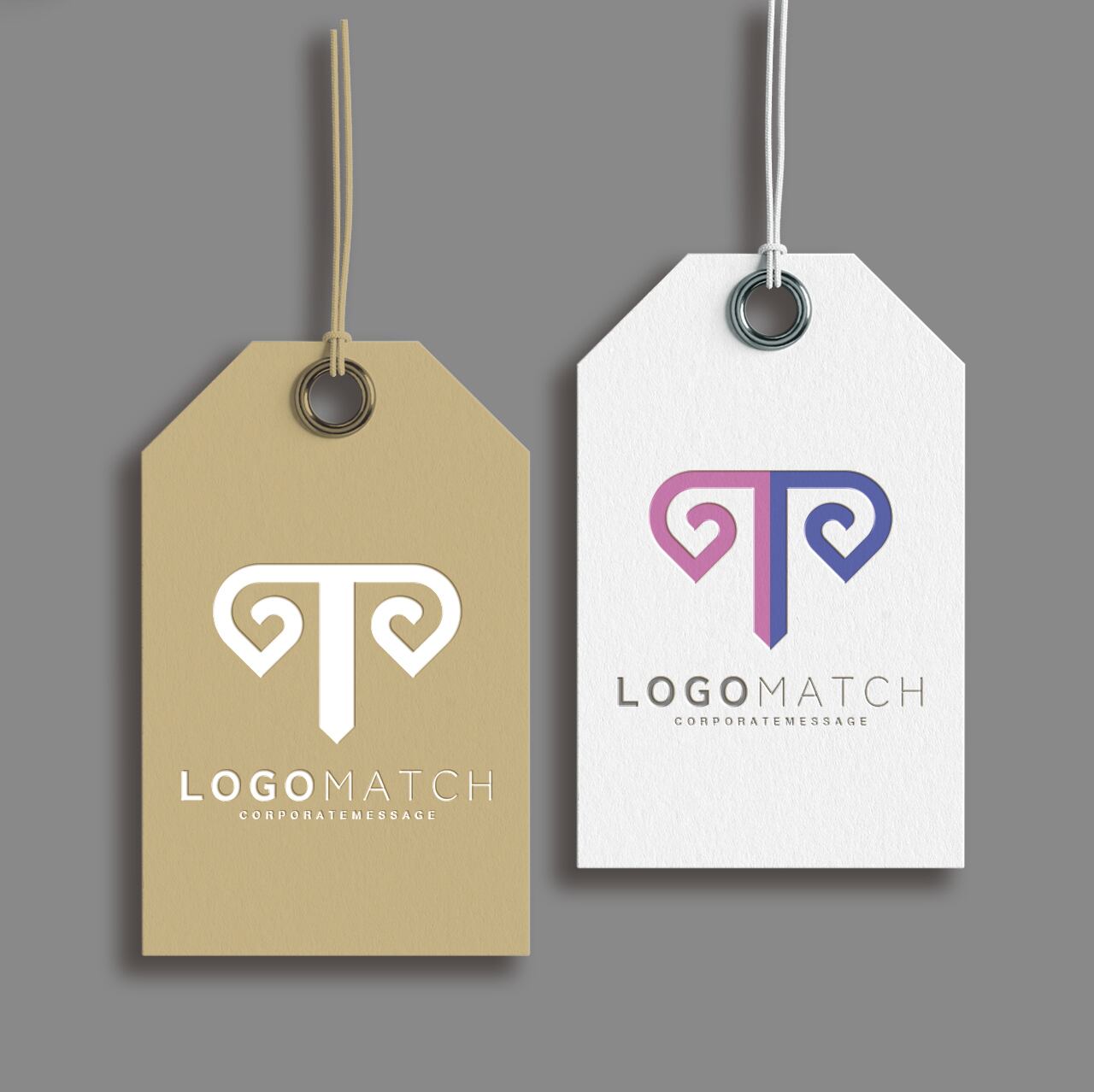 中央の柱(ピラー)から左右に伸びる二つのエレメントが、渦巻き状の曲線を描き、それぞれハート型を形成しているデザインです。全体としてアルファベットの「T」や古代ギリシャの柱(イオニア式)のような印象も持ちます。ピンクと紫の柔らかな配色は、優しさ、愛情、そして創造的な感性を表現し、二つのハートの組み合わせは「パートナーシップ」や「バランス」を象徴します。デザイン、カウンセリング、ライフスタイル、またはウェルネス関連の企業に、信頼感と調和のメッセージを伝えるシンボルです。