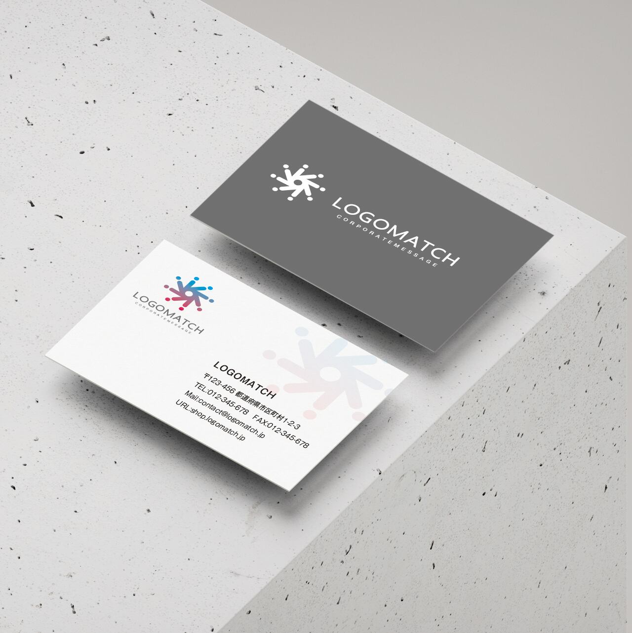 ロゴマーク下のLOGOMATCHの部分をお客様の社名、屋号、サービス名に差し替えて「世界にひとつのオリジナルロゴマーク」をご提供いたします。カラーの変更や書体のカスタマイズもお気軽にご相談ください。