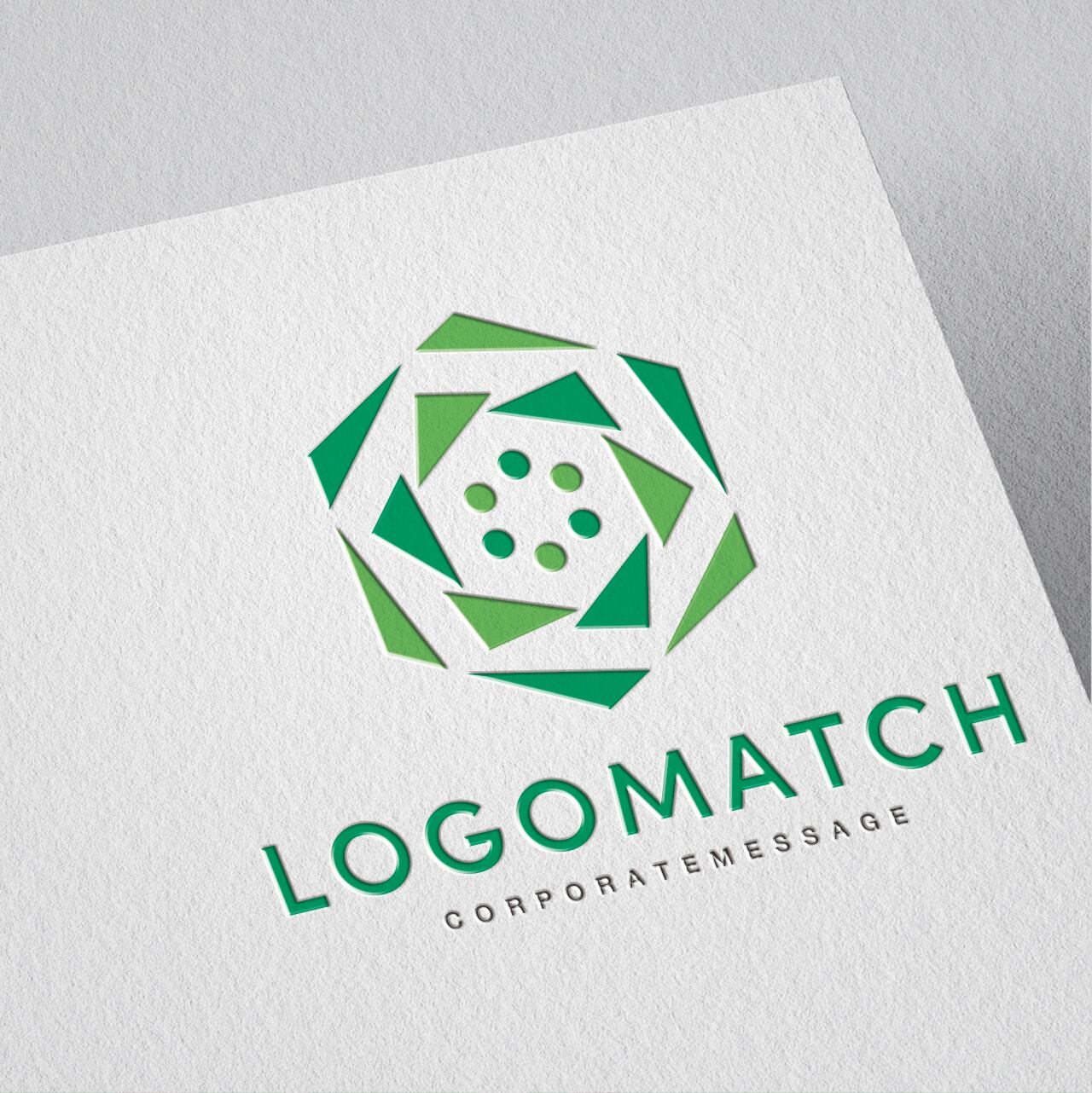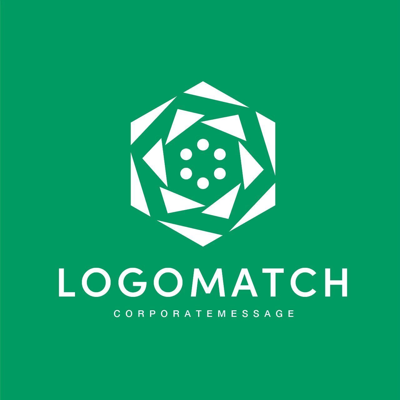 安定と調和の象徴である「六角形(ヘキサゴン)」をベースに、幾何学的なパーツが重なり合い、中心から花が開くように構成されたモダンなデザインです。中心の円形に並んだドットは「個々のアイデア」や「多様な人材」を象徴しており、それらが一箇所に集まることで大きなエネルギーを生み出す様子を表現しています。周囲を囲む三角形のパーツは、多角的な視点や精密な技術力を意味し、それらが連動して外側へ広がることで、事業の「持続的な成長」と「拡張性」を示唆しています。濃淡の異なるグリーンの配色は、環境への配慮(サステナビリティ)と、生命力あふれる瑞々しい知性を感じさせます。