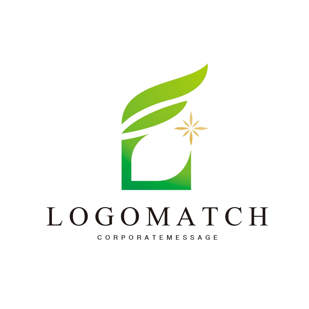 ゴールドのスパークル(右): 中心で輝く星のようなアクセントは、ひらめき、成果、そして「関わる人々の笑顔」を象徴しています。グリーンという自然の生命力に、ゴールドという価値(実り)が加わることで、事業の成功と幸福が結びついていることを示しています。